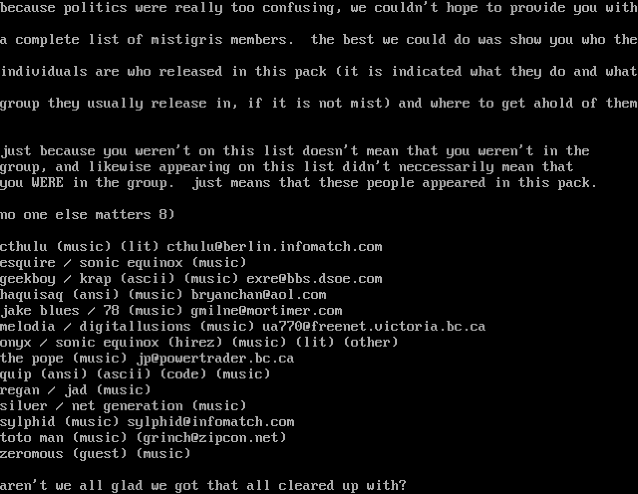 a complete list of mistigris members. the best we could do was show you who the