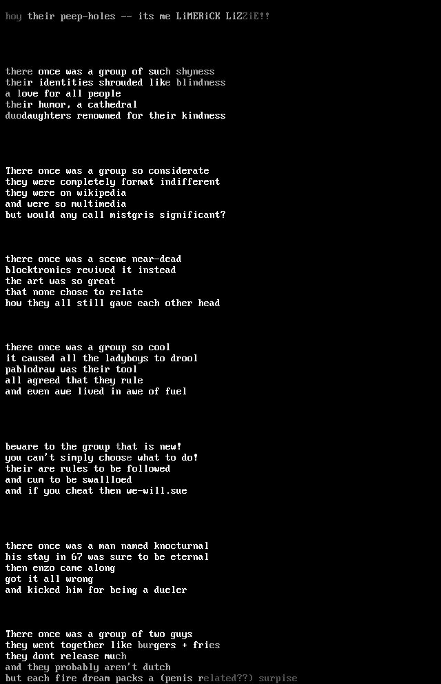 hoy their peep-holes -- its me LiMERiCK LiZZiE!!