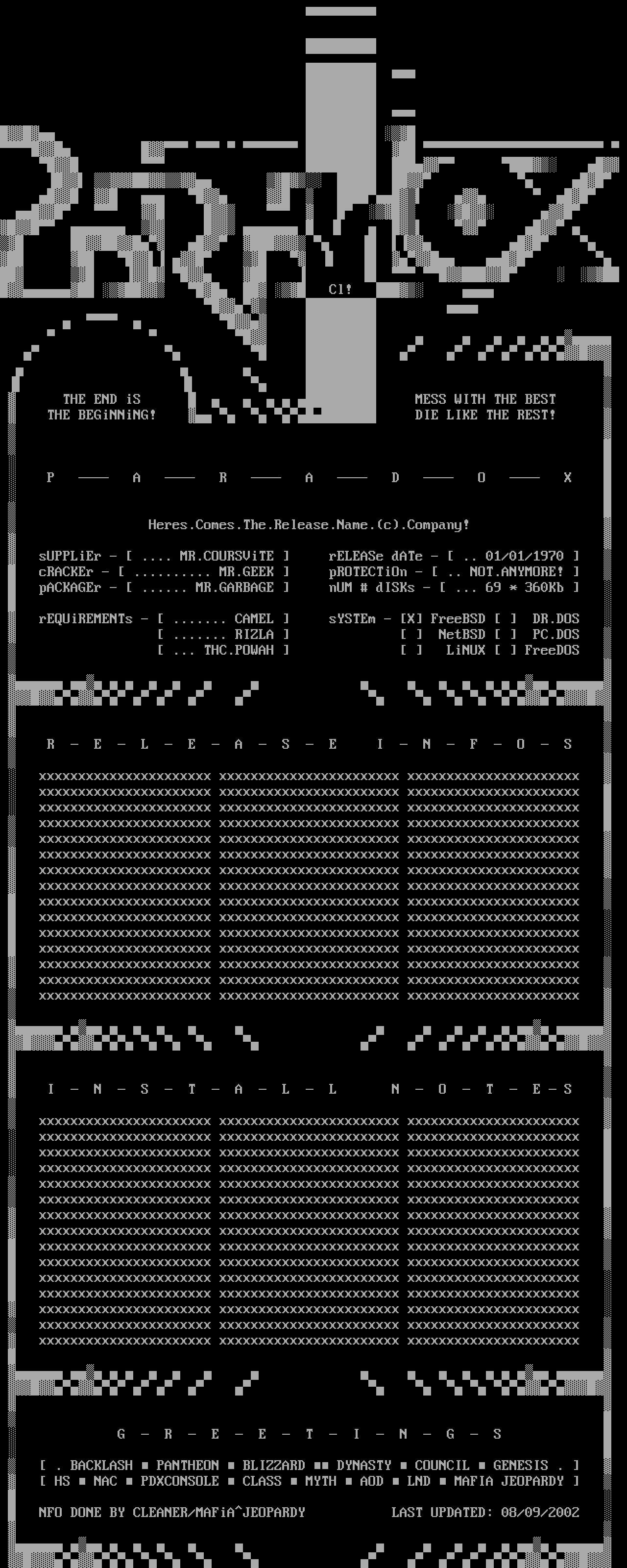 NFO DONE BY CLEANER/MAFiAJEOPARDY LAST UPDATED: 08/09/2002