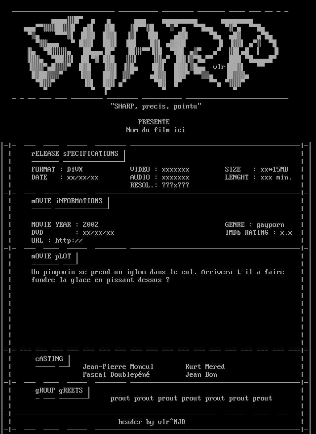 FORMAT : DiVX VIDEO : xxxxxxx SIZE : xx*15MB