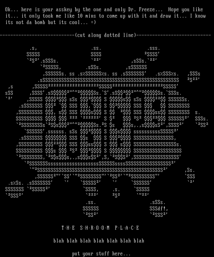 Ok... here is your asskey by the one and only Dr. Freeze... Hope you like