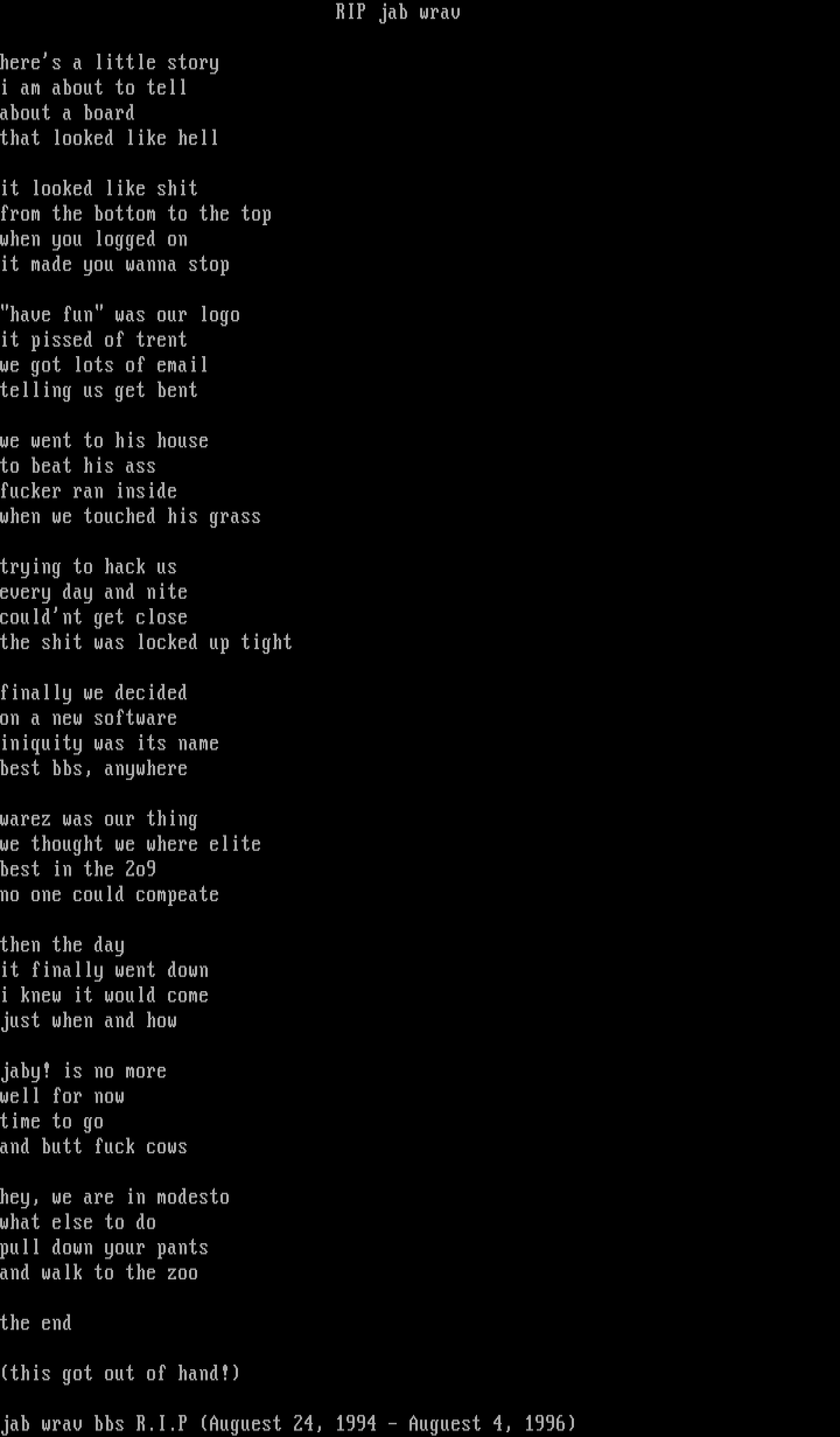 jab wrav bbs R.I.P Auguest 24, 1994 - Auguest 4, 1996
