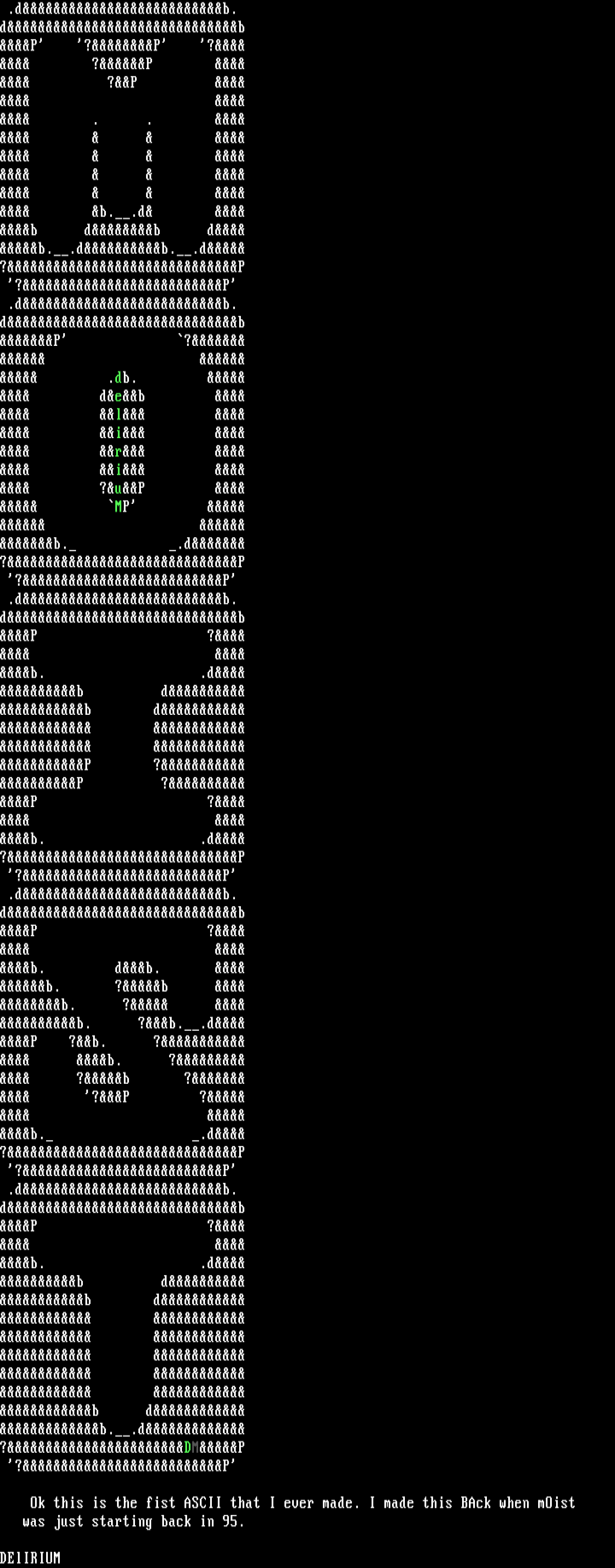 Ok this is the fist ASCII that I ever made. I made this BAck when mOist