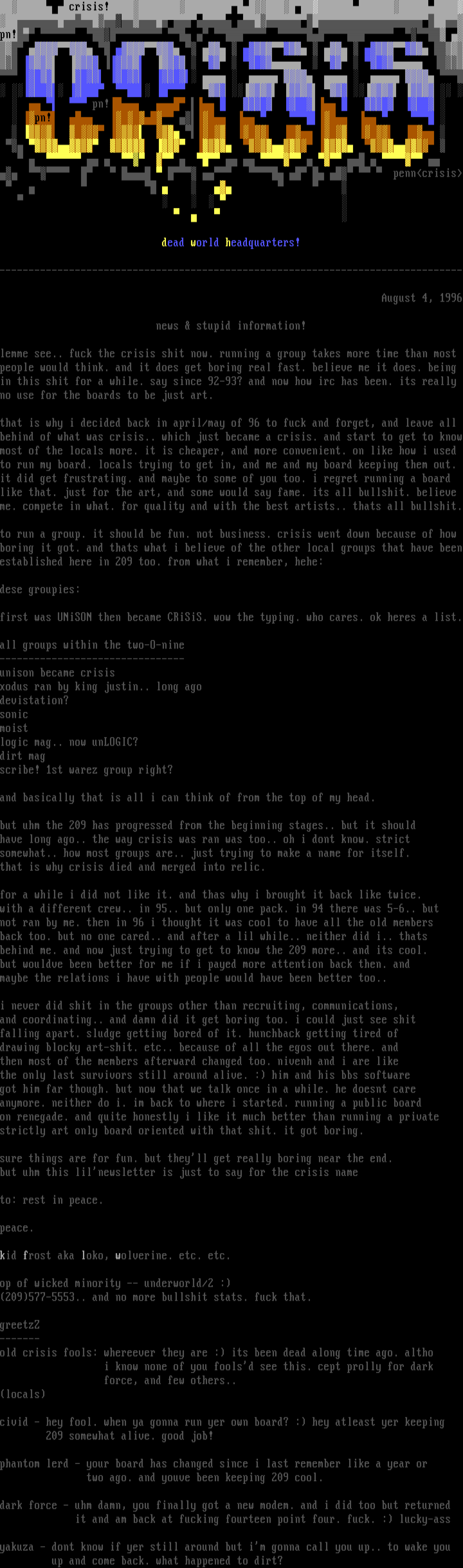 old crisis fools: whereever they are : its been dead along time ago. altho