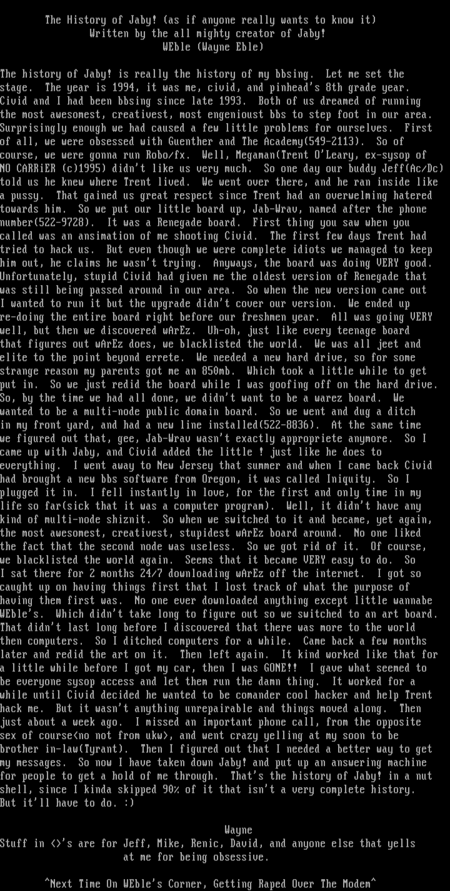 The history of Jaby! is really the history of my bbsing. Let me set the