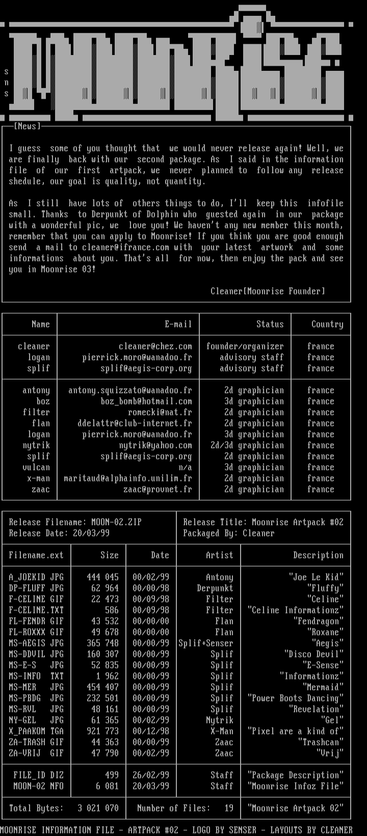MOONRISE INFORMATION FILE - ARTPACK 02 - LOGO BY SENSER - LAYOUTS BY CLEANER