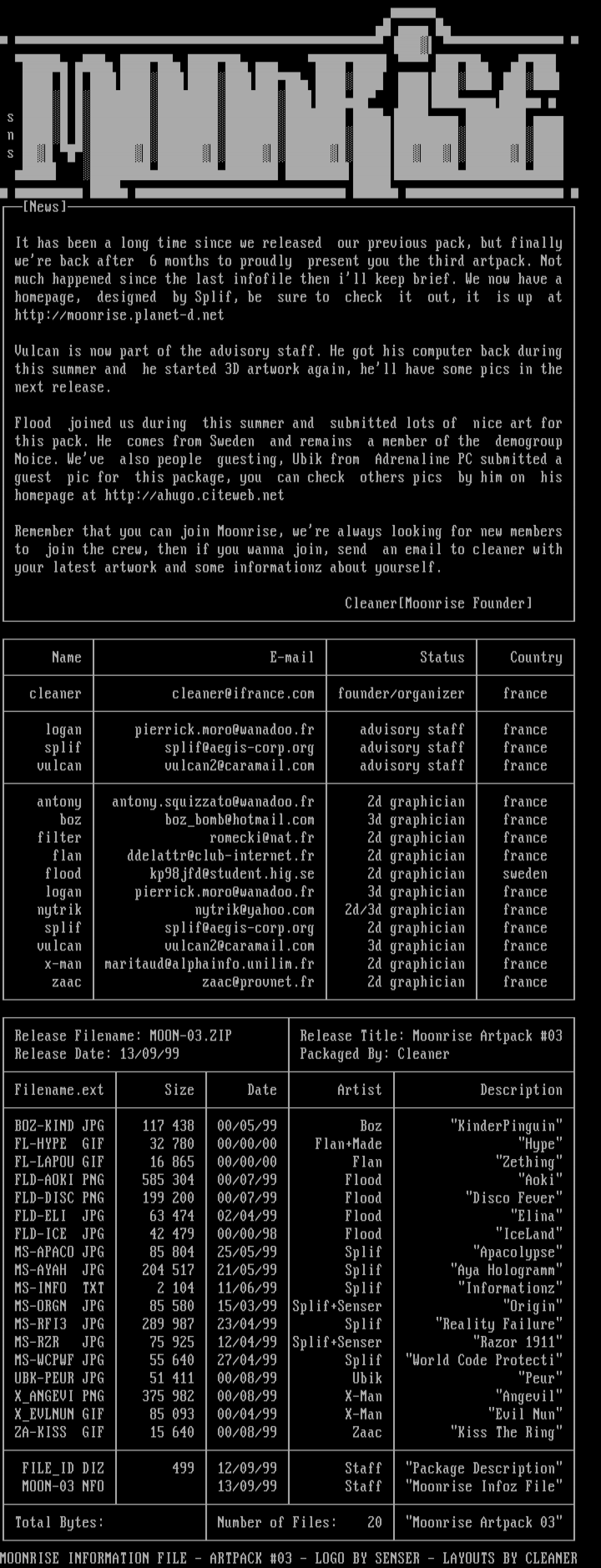 MOONRISE INFORMATION FILE - ARTPACK 03 - LOGO BY SENSER - LAYOUTS BY CLEANER