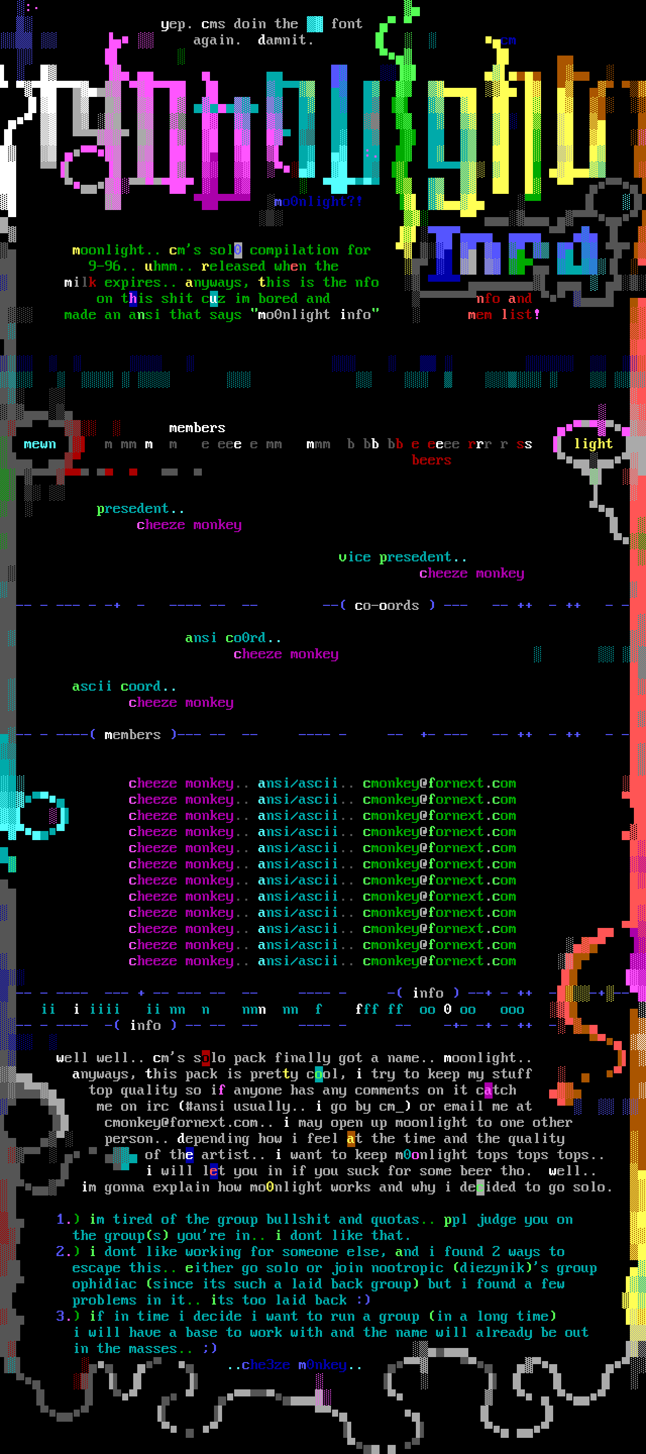9-96.. uhmm.. released when the milk expires.. anyways, this is the nfo on this shit cuz im bored and nfo and made an ansi that says mo0nlight info mem list!