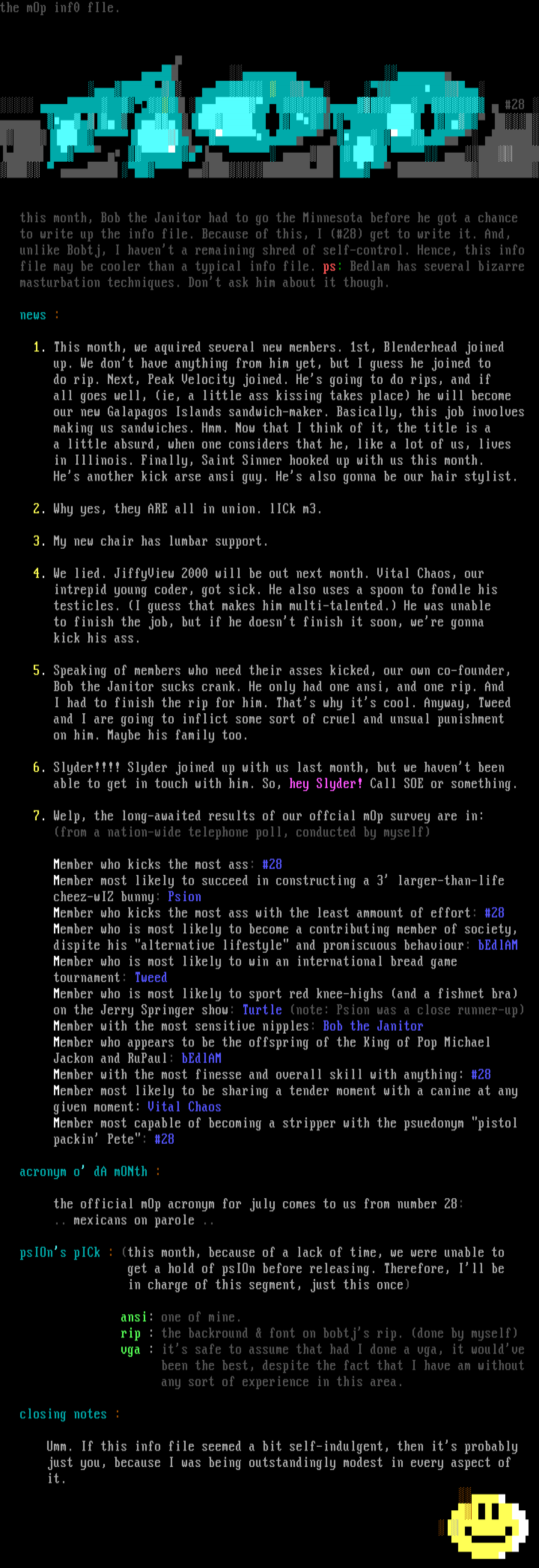 Bob the Janitor sucks crank. He only had one ansi, and o