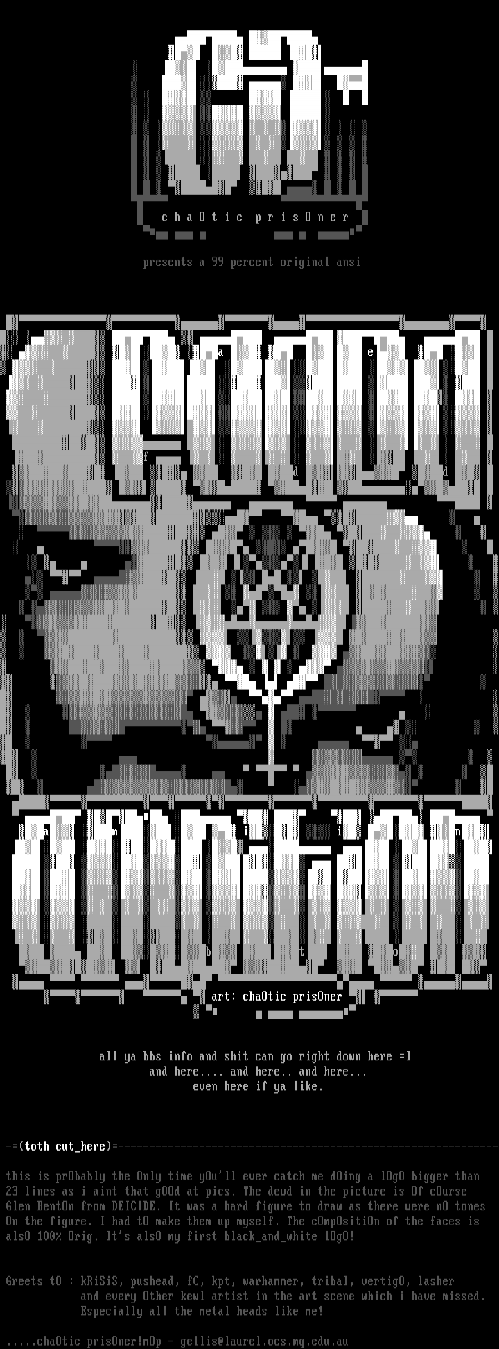 Greets tO : kRiSiS, pushead, fC, kpt, warhammer, tribal, vertigO, lasher