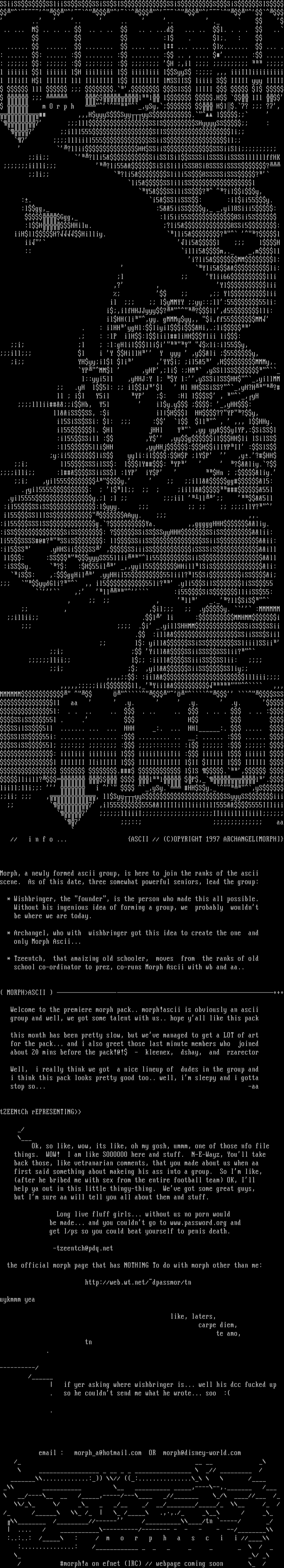 Welcome to the premiere morph pack.. morph!ascii is obviously an ascii