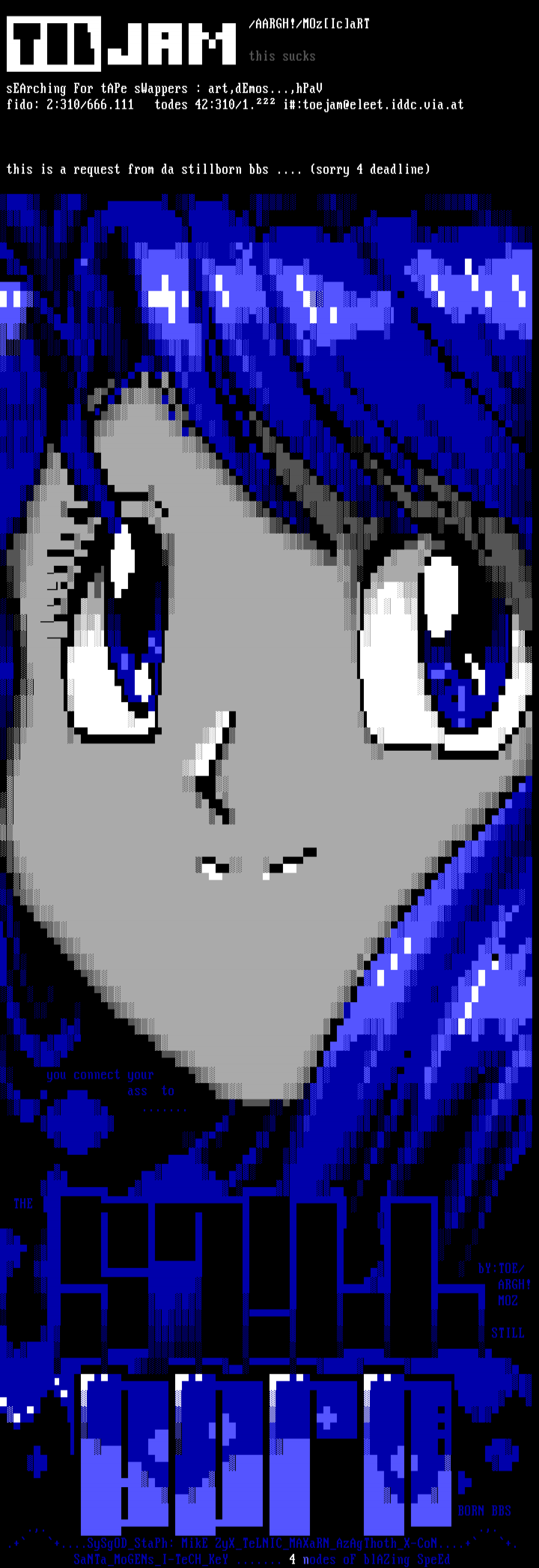 fido: 2:310/666.111 todes 42:310/1. i:toejam@eleet.iddc.via.at
