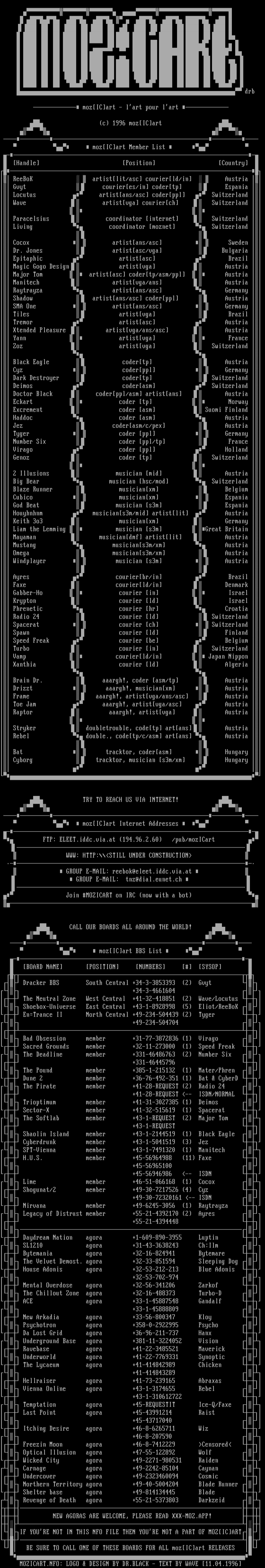 MOZICART.NFO: LOGO DESIGN BY DR.BLACK - TEXT BY WAVE 11.04.1996
