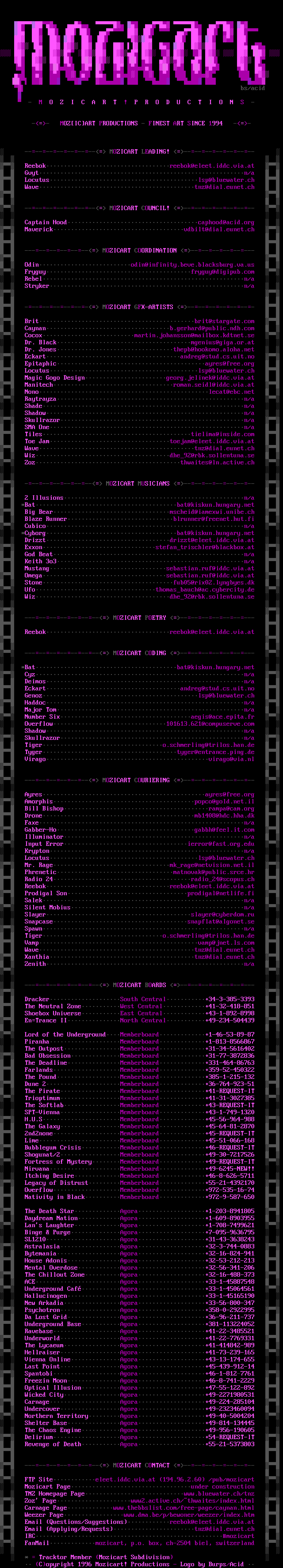 Copyright 1996 Mozicart! Productions - Logo by Burps/Acid