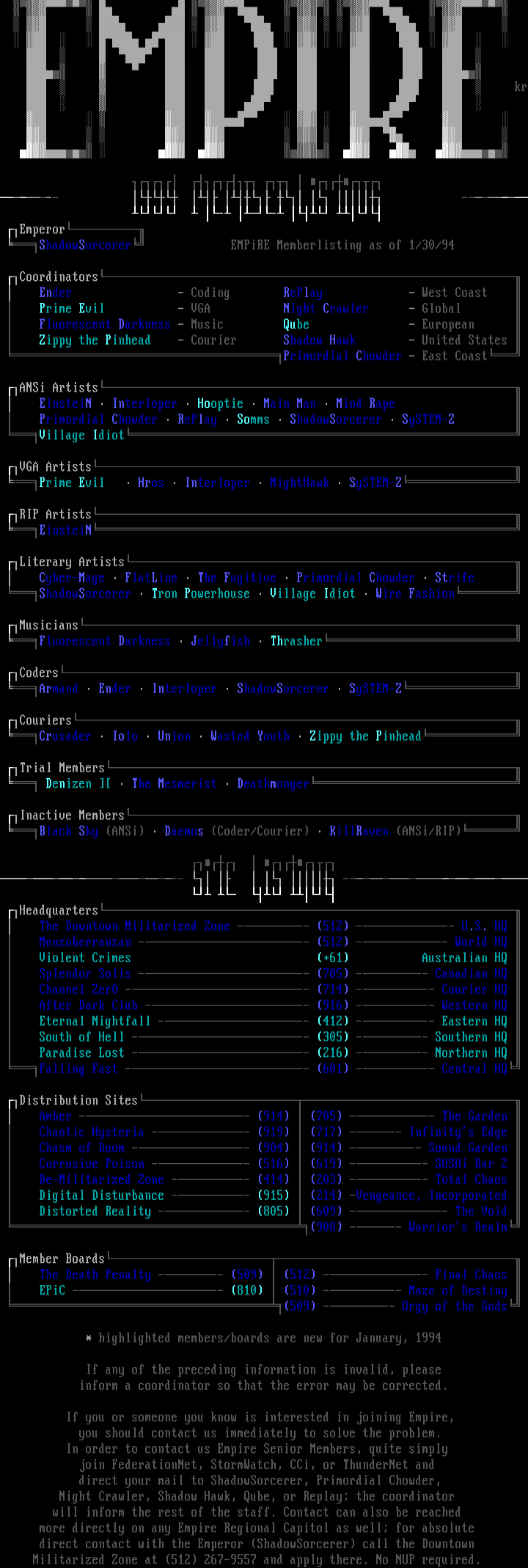 orcerer EMPiRE Memberlisting as of 1/30/94
