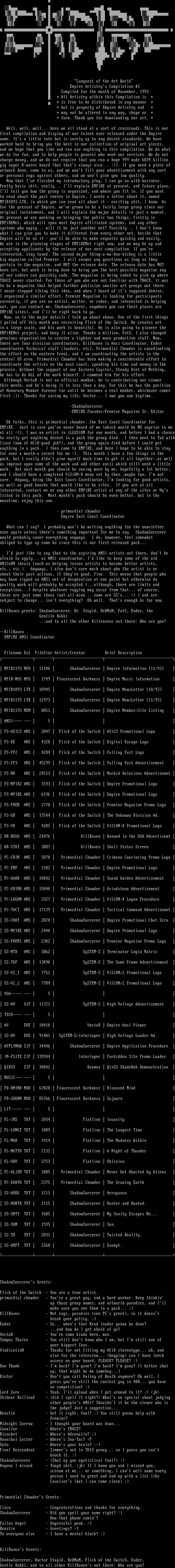at all , I was an artist in iLLUSiON for one month, and before I had a chanceto really get anything decent in a pack the group died. I then went to TaG withCisco now of ACiD-good job!, and the group again died before I could get