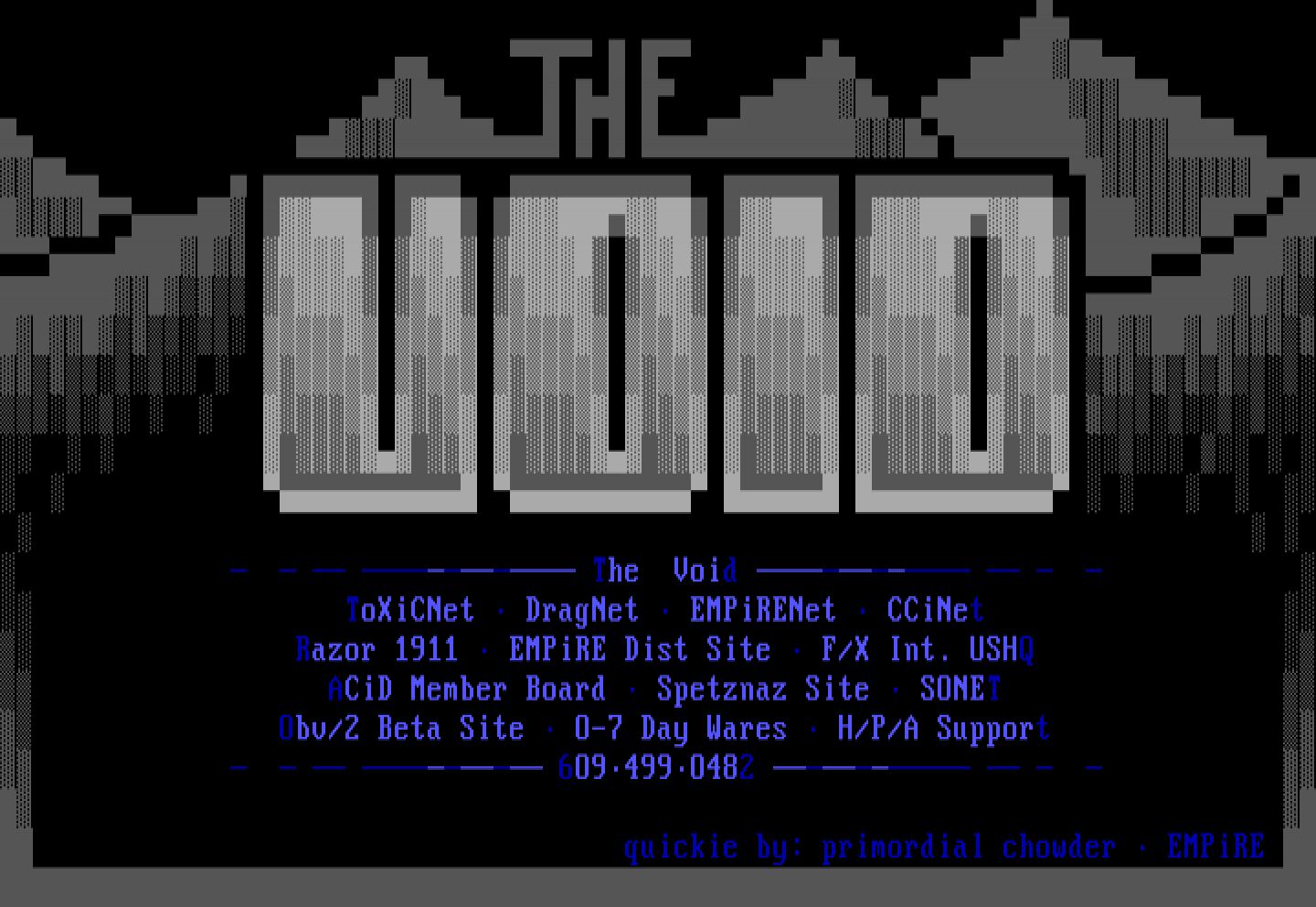 The Void ToXiCNet DragNet EMPiRENet CCiNet Razor 1911 EMPiRE Dist Site F/X Int. USHQ ACiD Member Board Spetznaz Site SONET Obv/2 Beta Site O-7 Day Wares H/P/A Support 6O9499O482 quickie by: primordial chowder EMPiRE