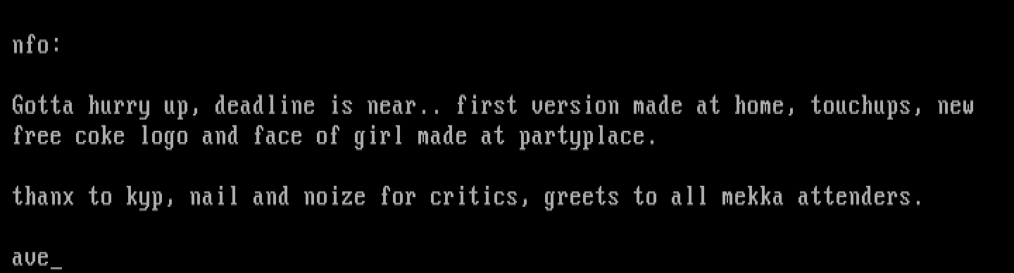 thanx to kyp, nail and noize for critics, greets to all mekka attenders.