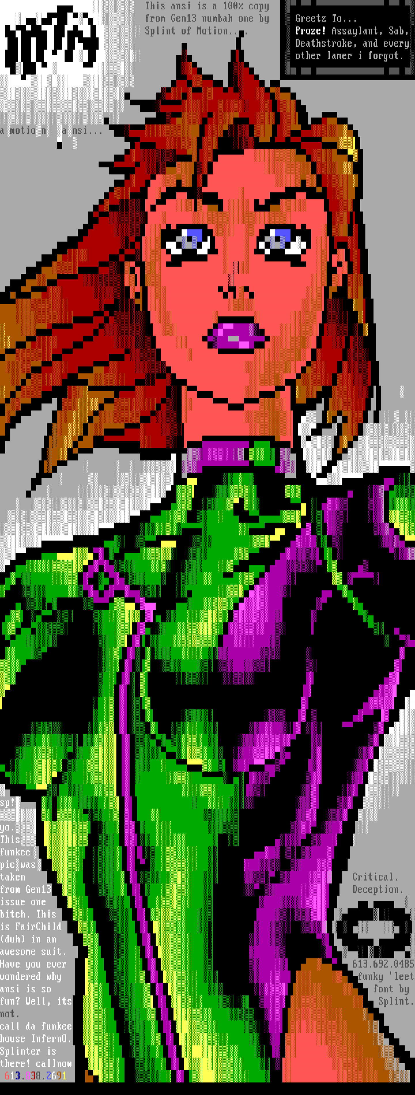 This ansi is a 100 copy from Gen13 numbah one by Greetz To... Splint of Motion... Proze! Assaylant, Sab, Deathstroke, and every other lamer i forgot.