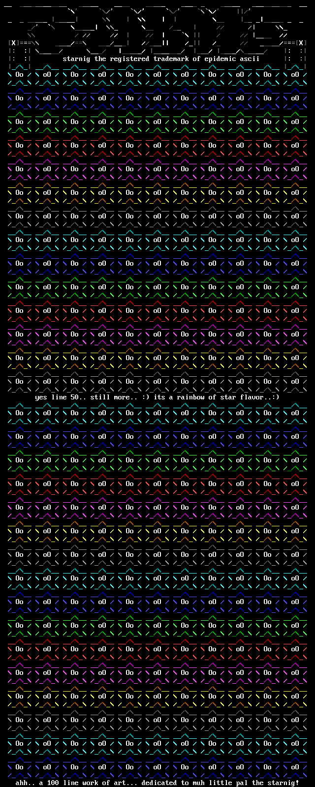 ahh.. a 100 line work of art... dedicated to muh little pal the starnig!