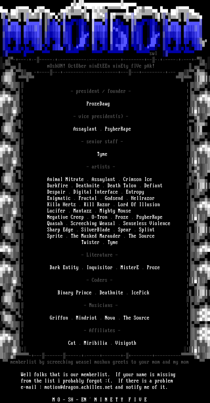 -+---+------+---------------------+--------+---+----+---+- mOshUN! OctOber ninEtEEn ninEty fIVe pAk! -+------+------------------+------+--------+-- - president / founder -