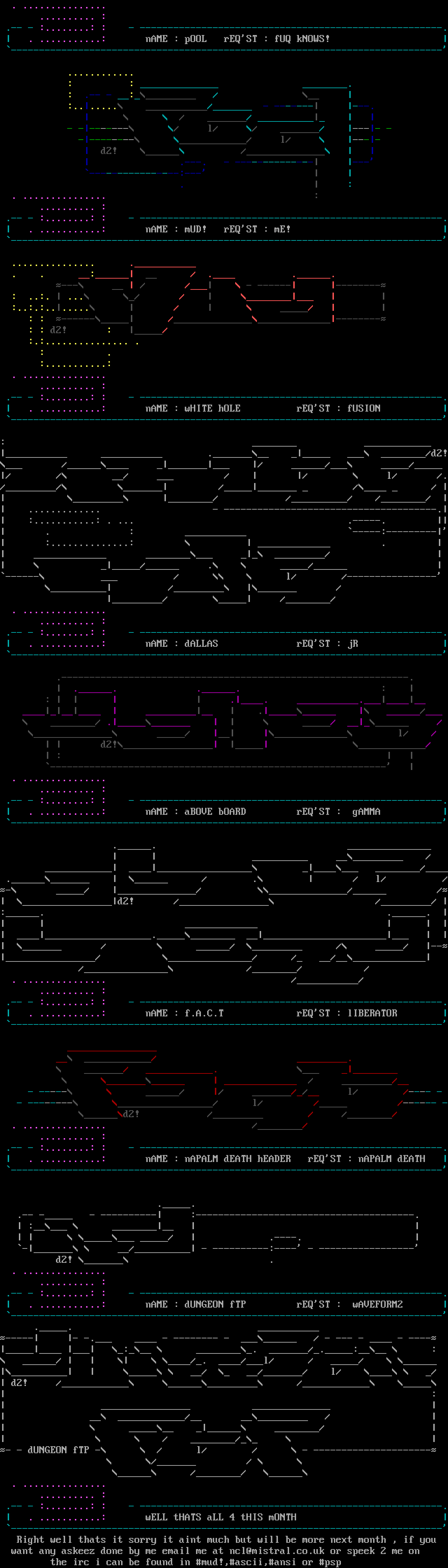 .-- - :........: : - ------------------------------------------------------. . ...........: nAME : mUD! rEQST : mE! -----------------------------------------------------------------------------