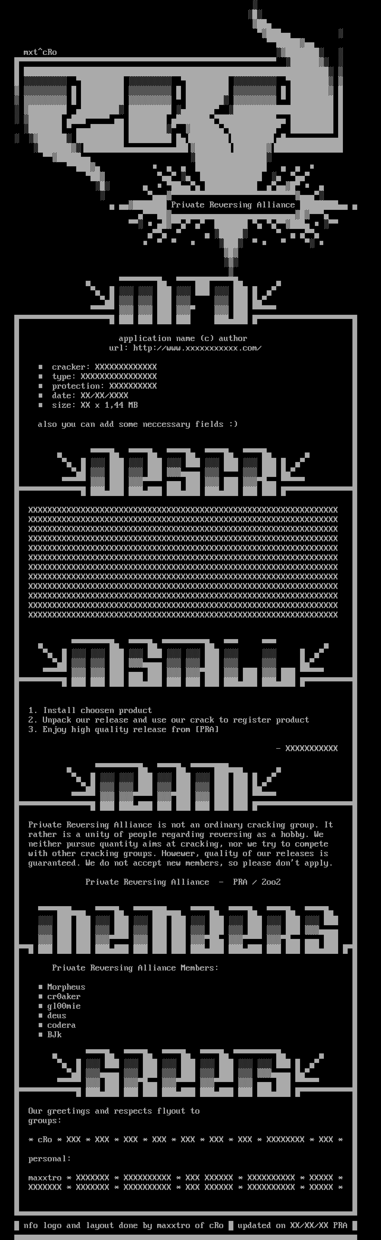 nfo logo and layout done by maxxtro of cRo updated on XX/XX/XX PRA