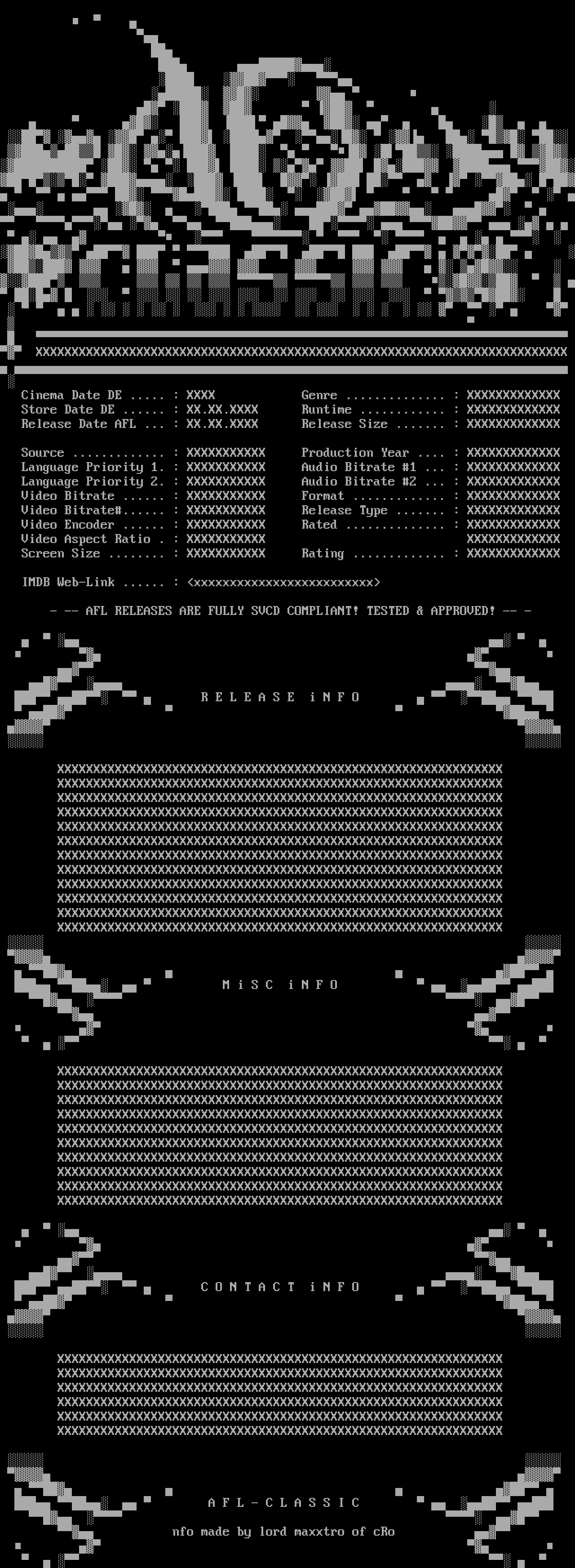 Release Date AFL ... : XX.XX.XXXX Release Size ....... : XXXXXXXXXXXXX