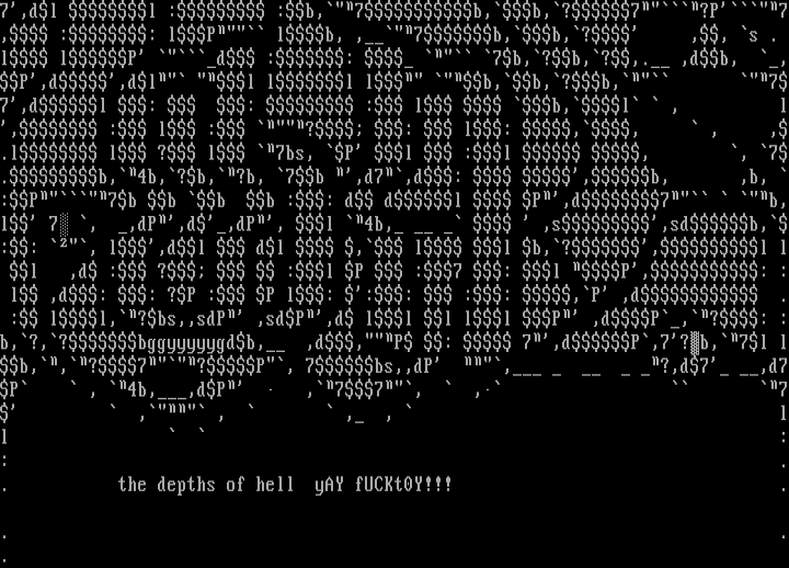 l lP d :: 7b,?b,?,. ,db, ,P,d,dl l ll l b,b,?b, 77,dl : : : l b,l , l, : l : ? : l: ,, , ,.l l ? l 7bs, P l :l , , 7.b,4b,?b,?b, 7b ,d7,d: ,b, ,b, :P7b b b b :: d dl P,d7 b,l 7 , ,dP,d,dP, l 4b, ,s,sdb,:: , l,dl dl , l l b,?,l l l ,d : ? :l P :7 : l P,: : l ,d: : ?P : P l: :: :: ,P ,d . : ll,?bs,,sdP ,sdP,d ll l ll P ,dP,?: :b,?,?bggyyyyygdb, ,d,P : 7,dP,7?b,7l lb,,?7?P, 7bs,,dP , ?,d7 ,d7P , 4b,,dP ,77, , 7 , , , , ll :: .. the depths of hell yAY fUCKt0Y!!! .