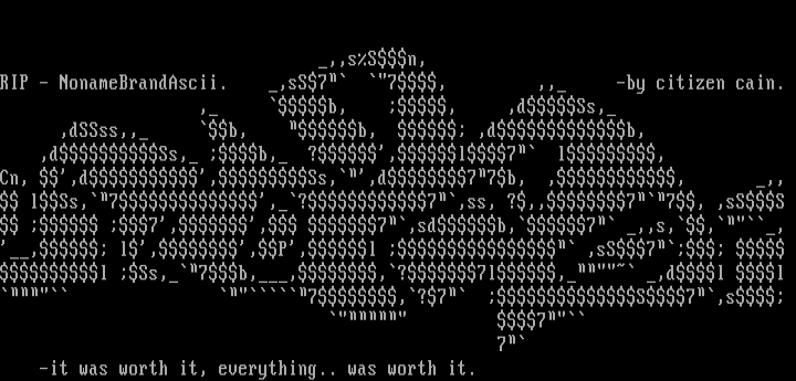 RIP - NonameBrandAscii. ,sS7 7, ,, -by citizen cain.