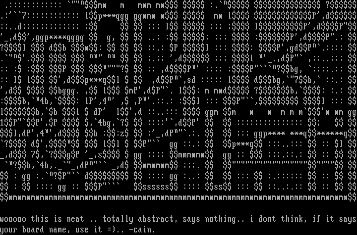 wooooo this is neat .. totally abstract, says nothing.. i dont think, if it saysyour board name, use it .. -cain.