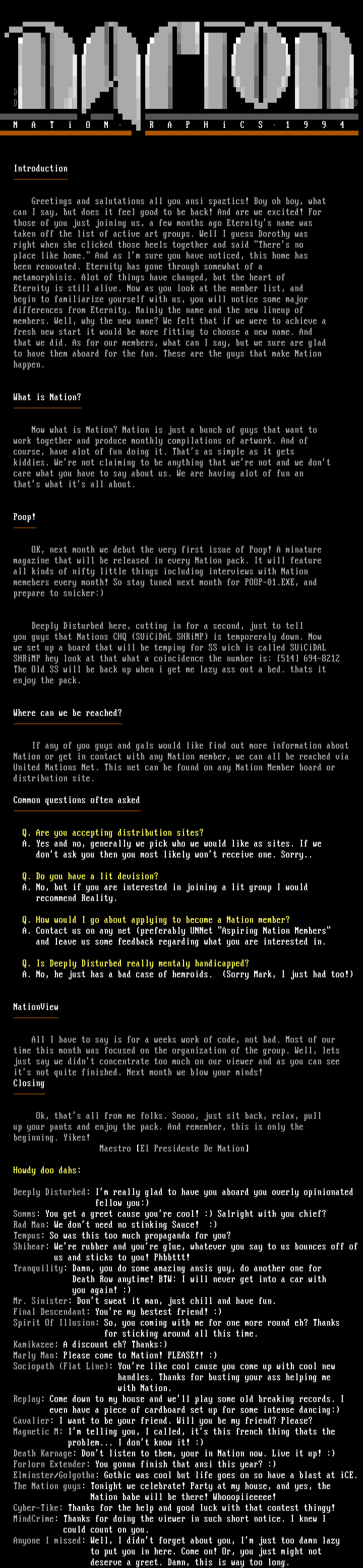 Greetings and salutations all you ansi spaztics! Boy oh boy,