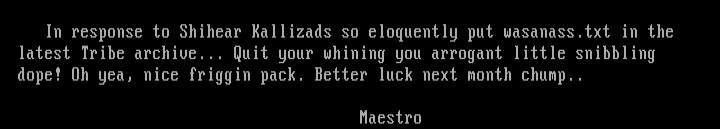 latest Tribe archive... Quit your whining you arrogant little snibbling