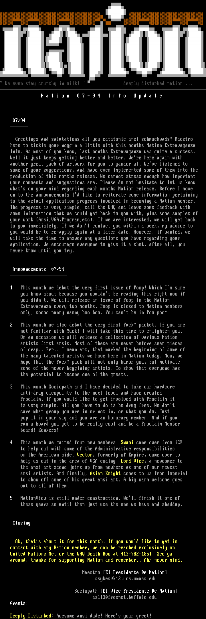 United Nations Net or the WHQ Death Row at 413-782-1851. See ya