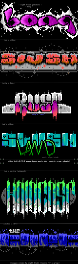 electric head (7) genocyber (12) megadose (9) nightstalker (2) terrorist (3)