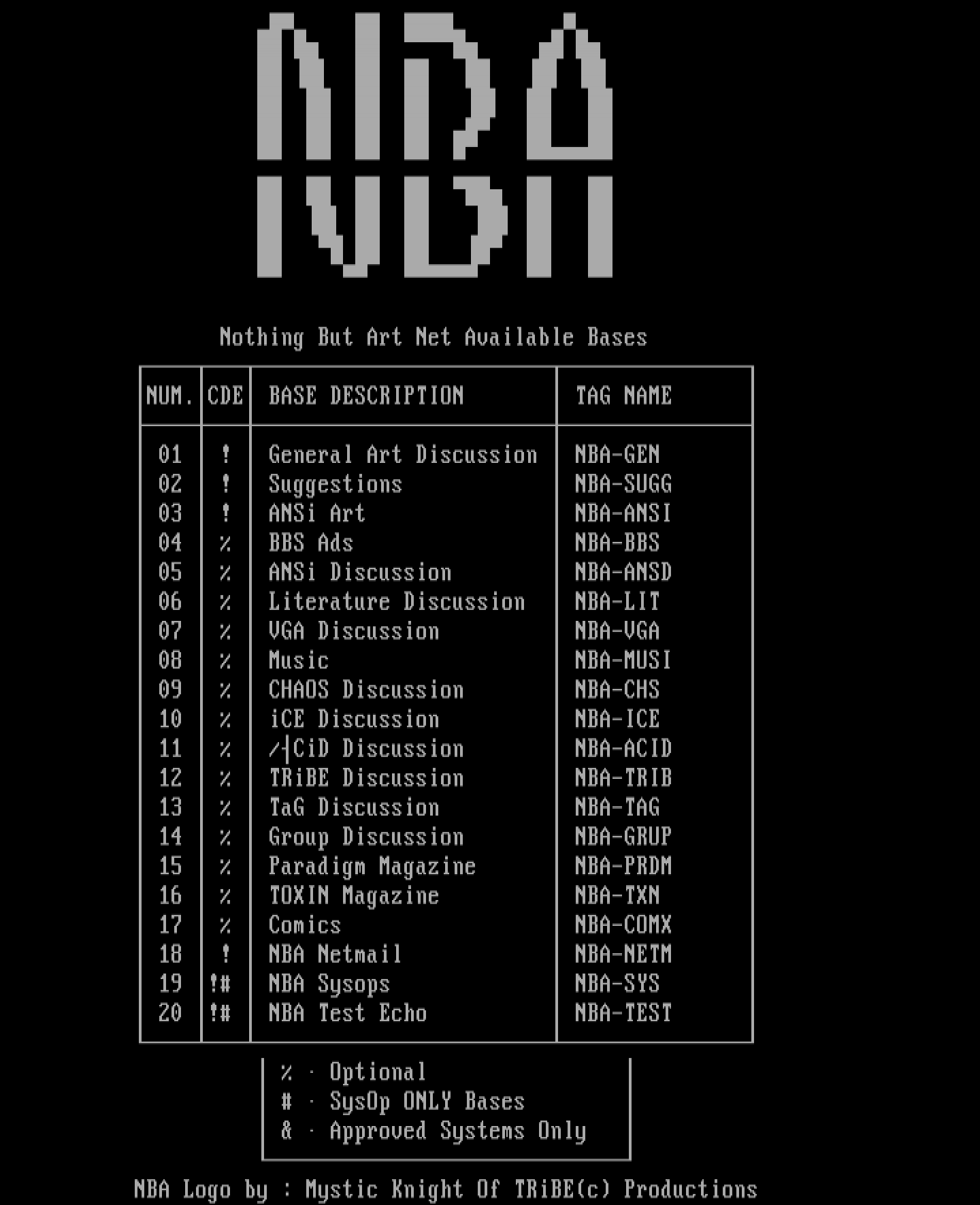 19 ! NBA Sysops NBA-SYS