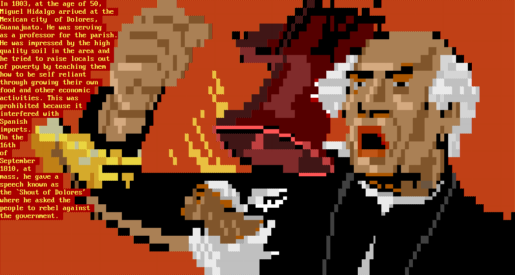 In 1803, at the age of 50, Miguel Hidalgo arrived at the Mexican city of Dolores, Guanajuato. He was serving as a professor for the parish. He was impressed by the high quality soil in the area and he tried to raise locals out of poverty by teaching them how to be self reliant through growing their own food and other economic activities. This was prohibited because it interfered with Spanish imports. On the 16th of September 1810, at mass, he gave a speech known as the Shout of Dolores where he asked the people to rebel against the government.