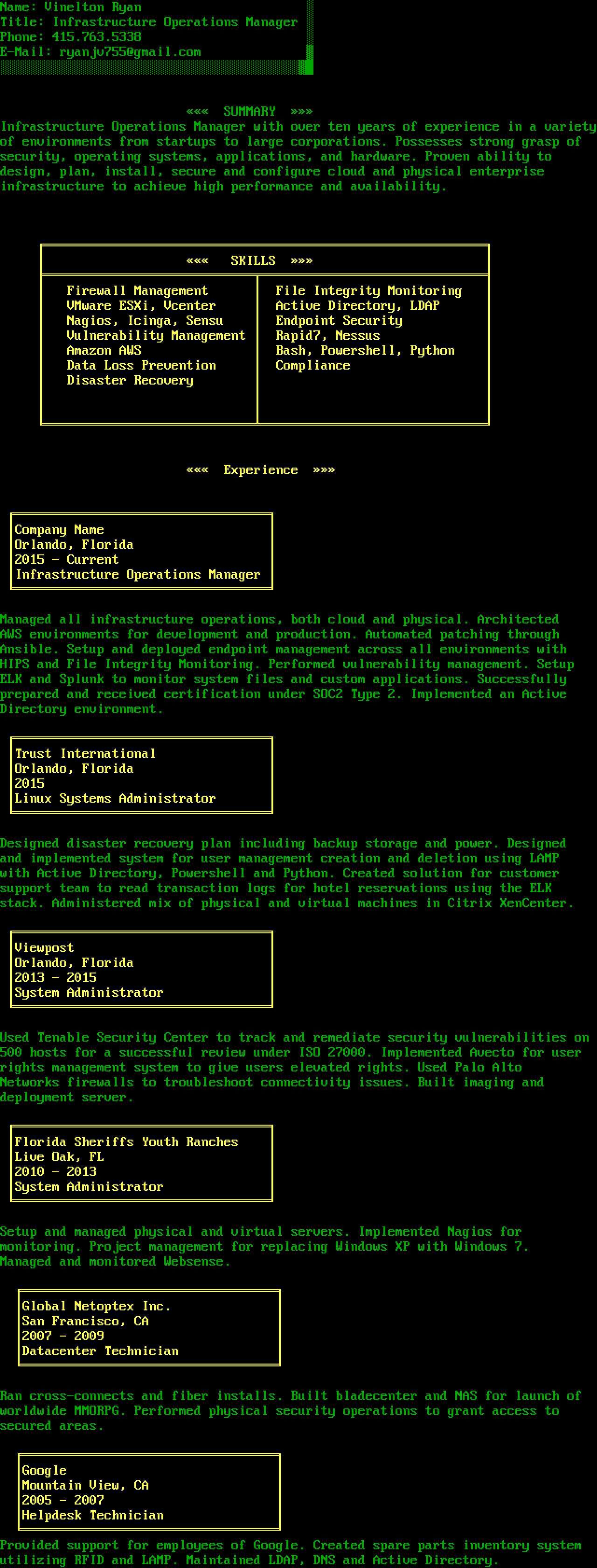 Infrastructure Operations Manager with over ten years of experience in a varietyof environments from startups to large corporations. Possesses strong grasp of