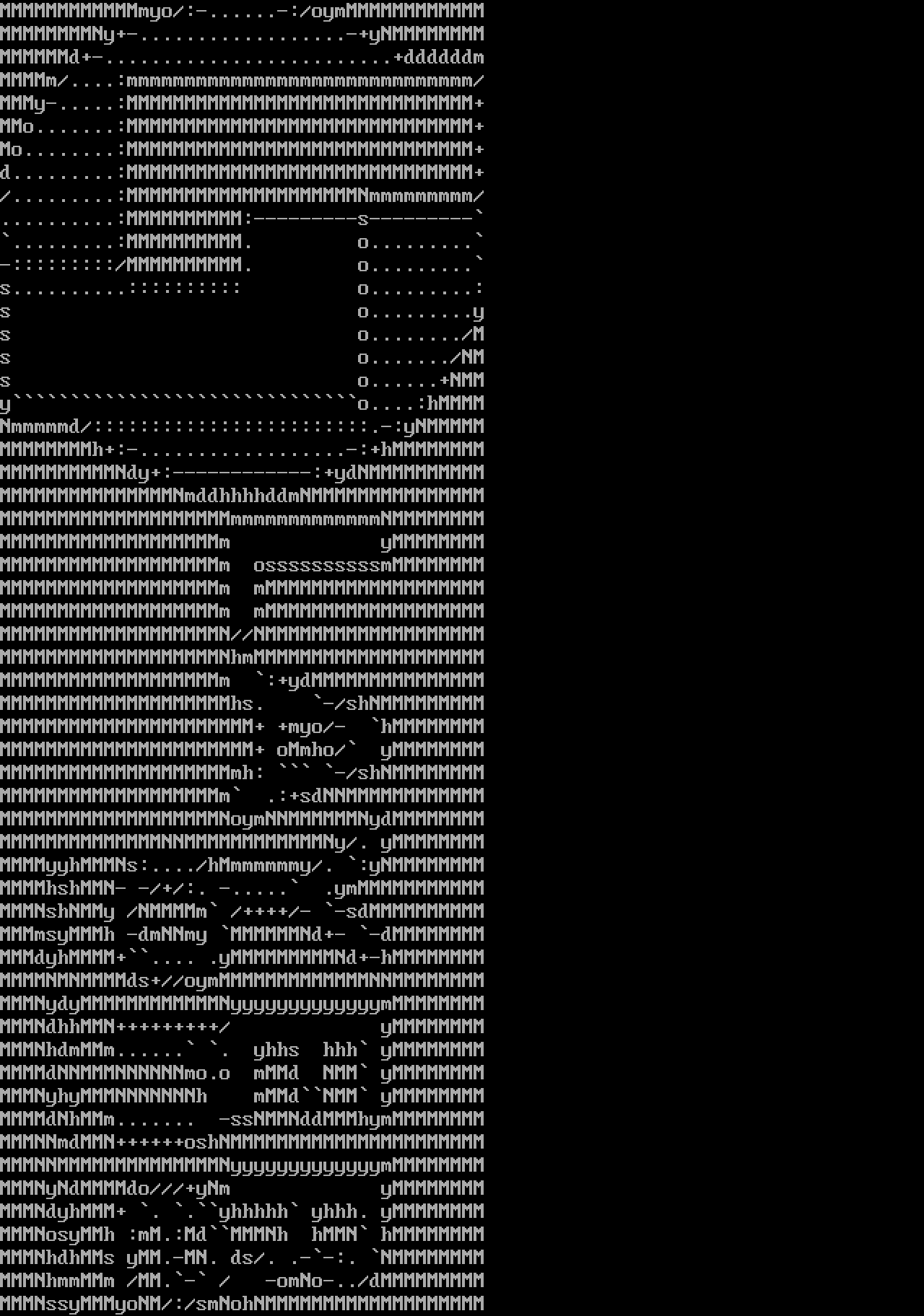MMMNdyhMMM+ . .yhhhhh yhhh. yMMMMMMMM