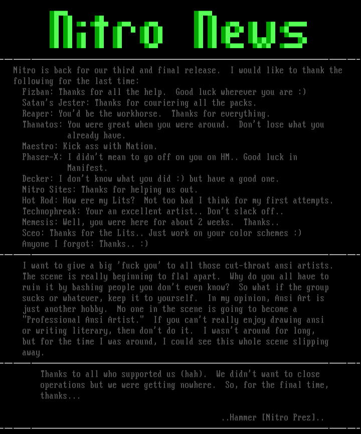 sucks or whatever, keep it to yourself. In my opinion, Ansi Art is