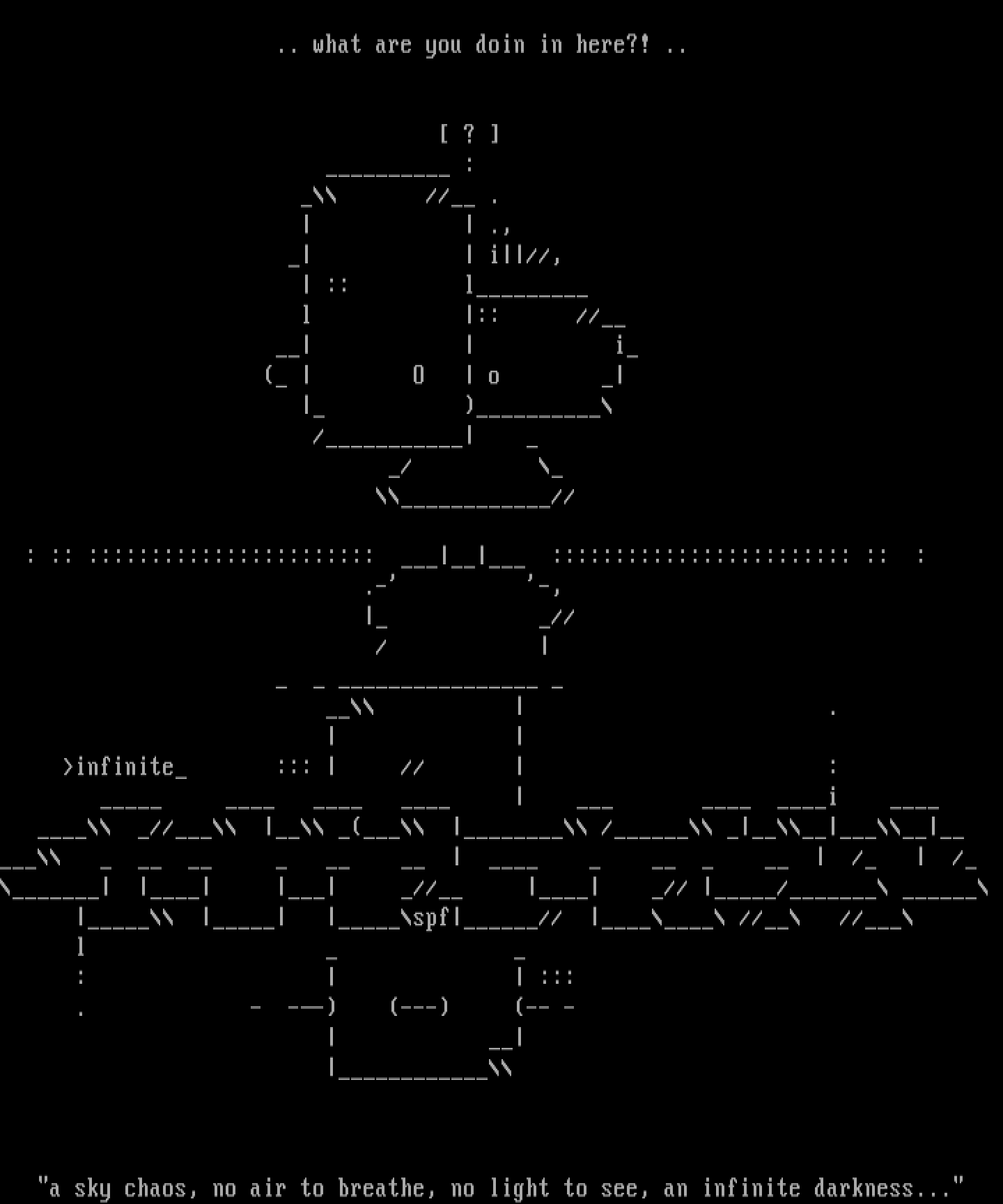 a sky chaos, no air to breathe, no light to see, an infinite darkness...