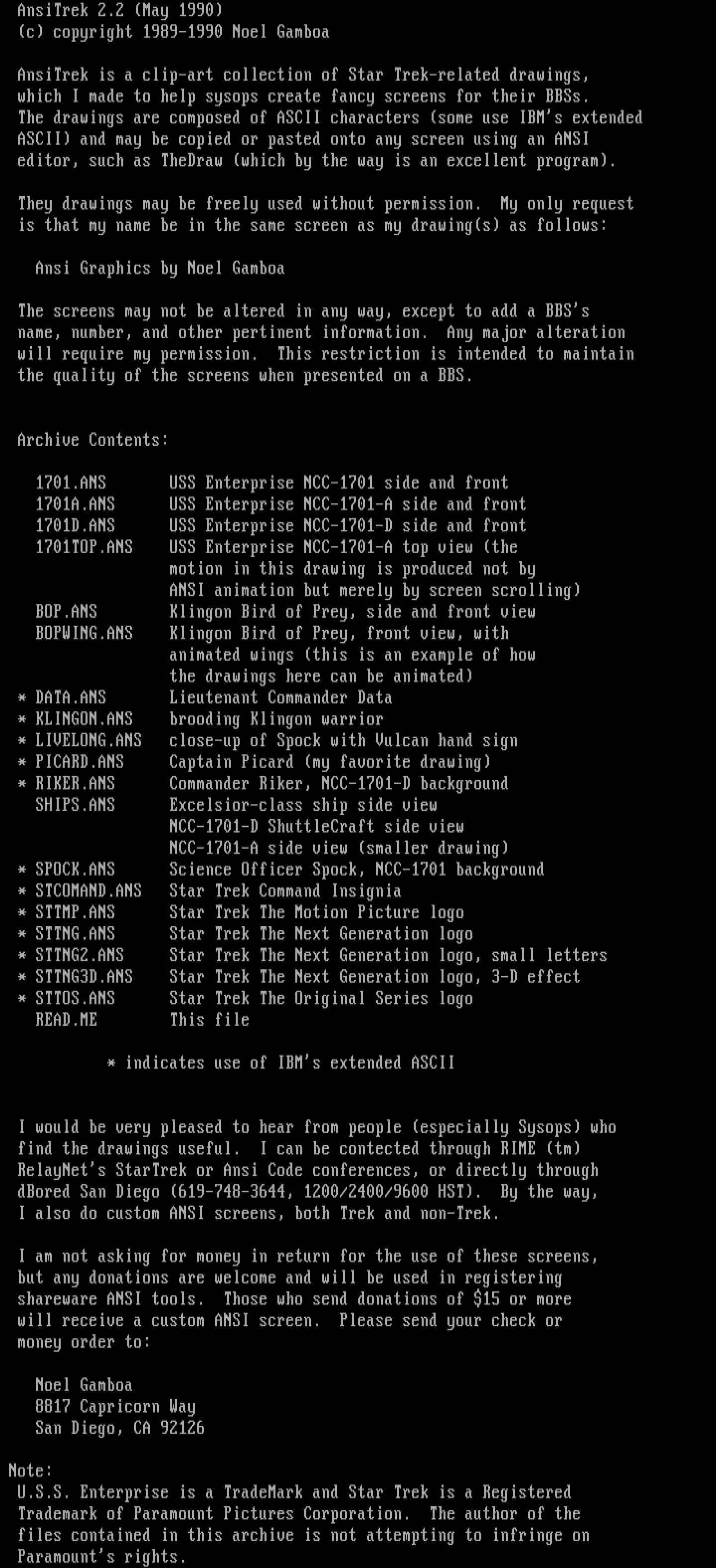 AnsiTrek is a clip-art collection of Star Trek-related drawings,