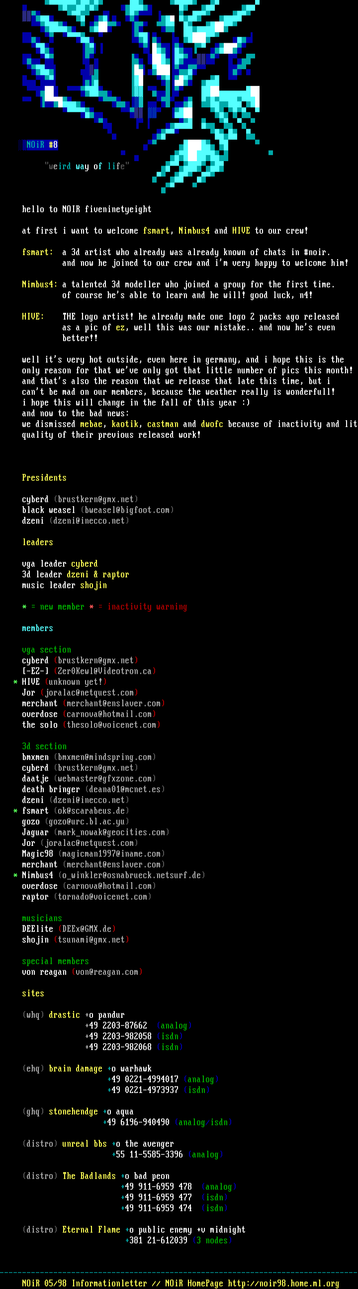-------------------------------------------------------------------------------- NOiR 05/98 Informationletter // NOiR HomePage http://noir98.home.ml.org