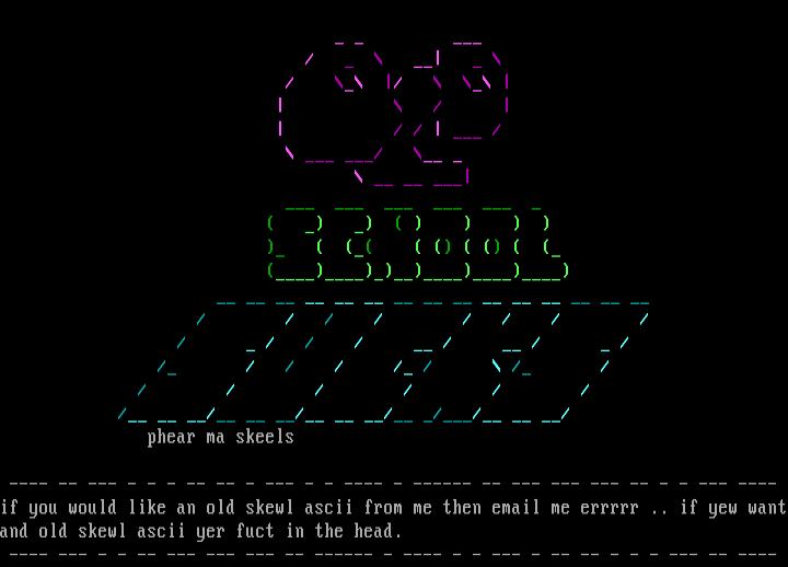 rrrrr .. if yew wantand old skewl ascii yer fuct in t