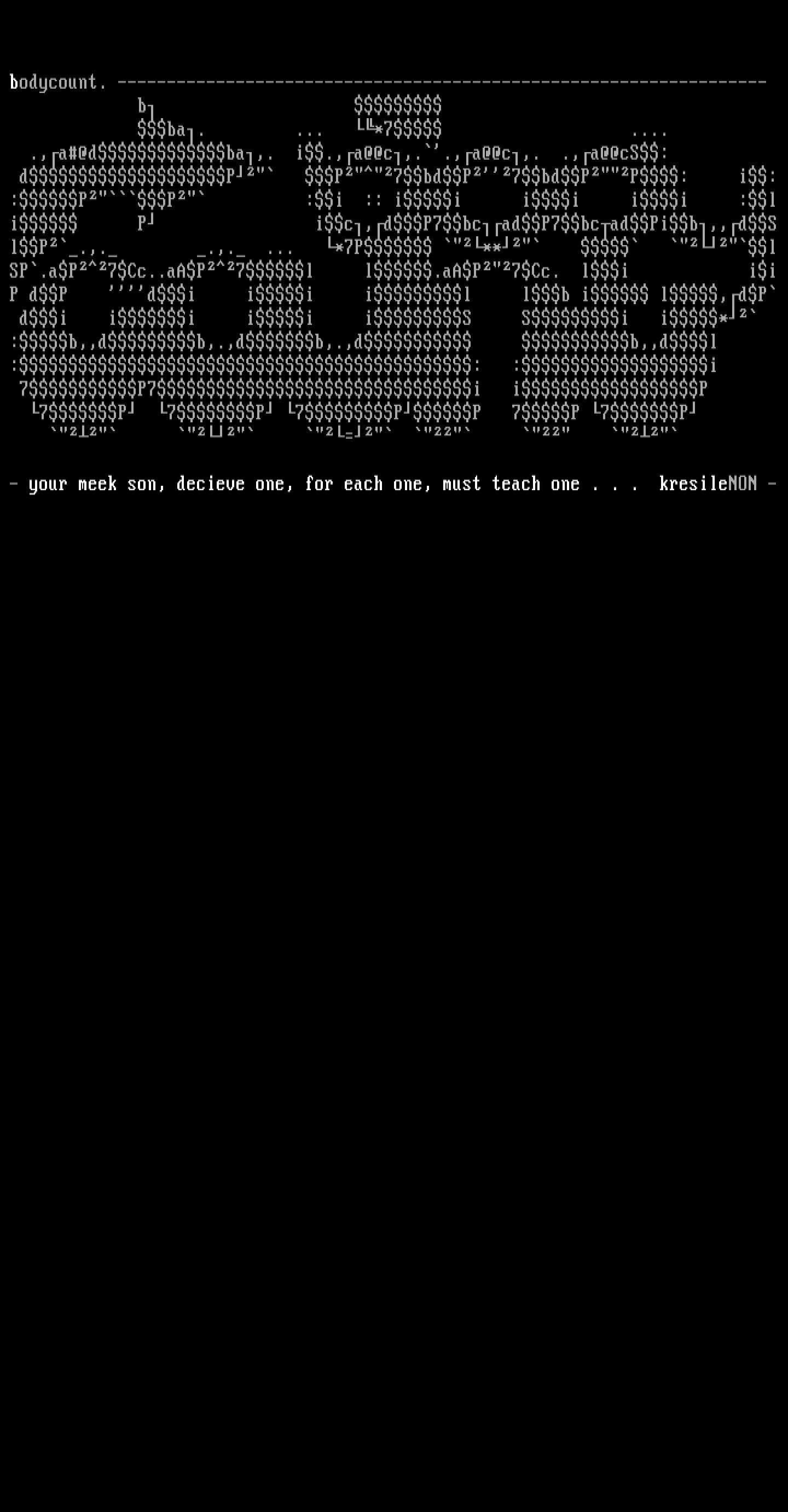 - your meek son, decieve one, for each one, must teach one . . . kresileNON -