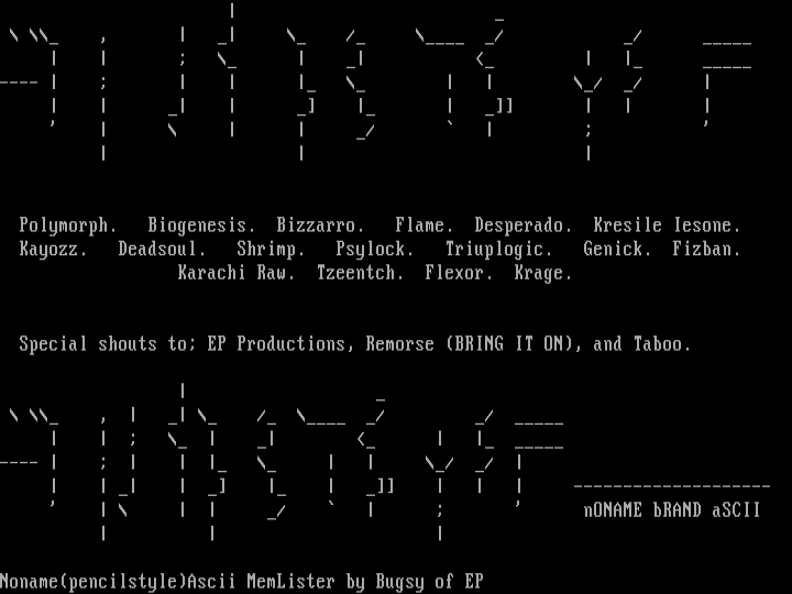 NonamepencilstyleAscii MemLister by Bugsy of EP