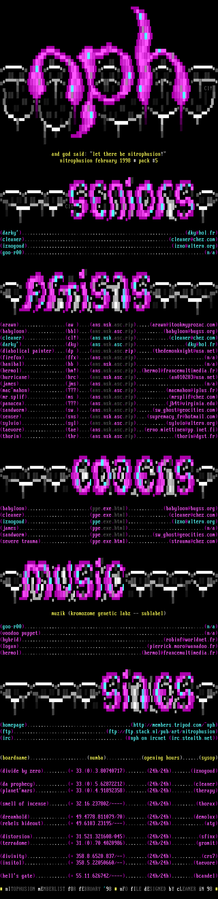 homepage......................................http://members.tripod.com/nphftp..................................ftp://ftp.stack.nl/pub/art/nitrophusionirc........................................ nph on ircnet irc.stealth.net