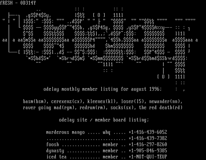 odelay monthly member listing for august 1996 : ,