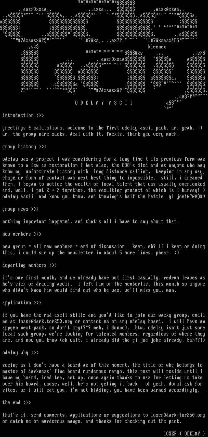 greetings salutations. welcome to the first odelay ascii pack. um, yeah.