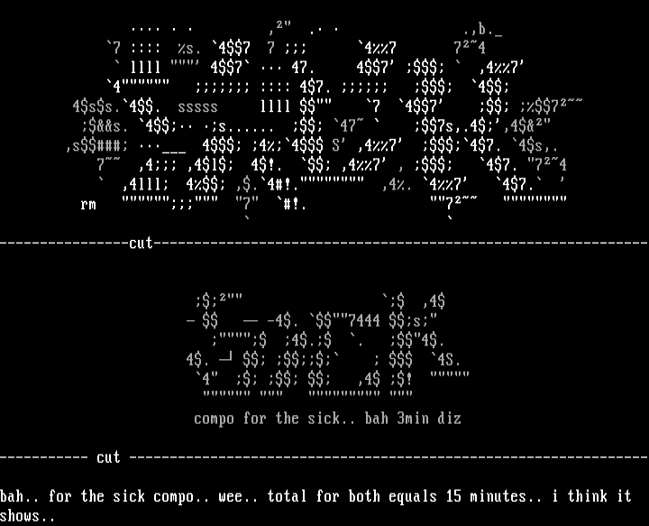 bah.. for the sick compo.. wee.. total for both equals 15 minutes.. i think it
